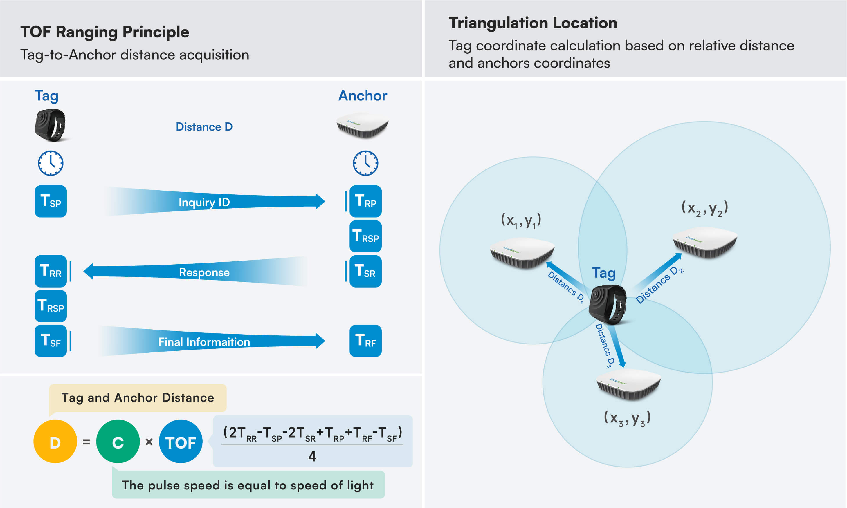 UWB (Ultra-wideband) technology enables communication and positioning by using ultra-short pulse signals with a broad frequency range, typically spanning several GHz. Unlike Wi-Fi or Bluetooth, which operate within specific frequency bands, UWB achieves ultra-high time resolution in complex environments. It calculates distance by measuring the Time of Flight (ToF) of signals, distinguishing arrival time differences of multipath signals. By using multiple anchors and triangulation algorithms, UWB provides accurate positioning with centimeter or even millimeter accuracy, making it ideal for high-accuracy applications.